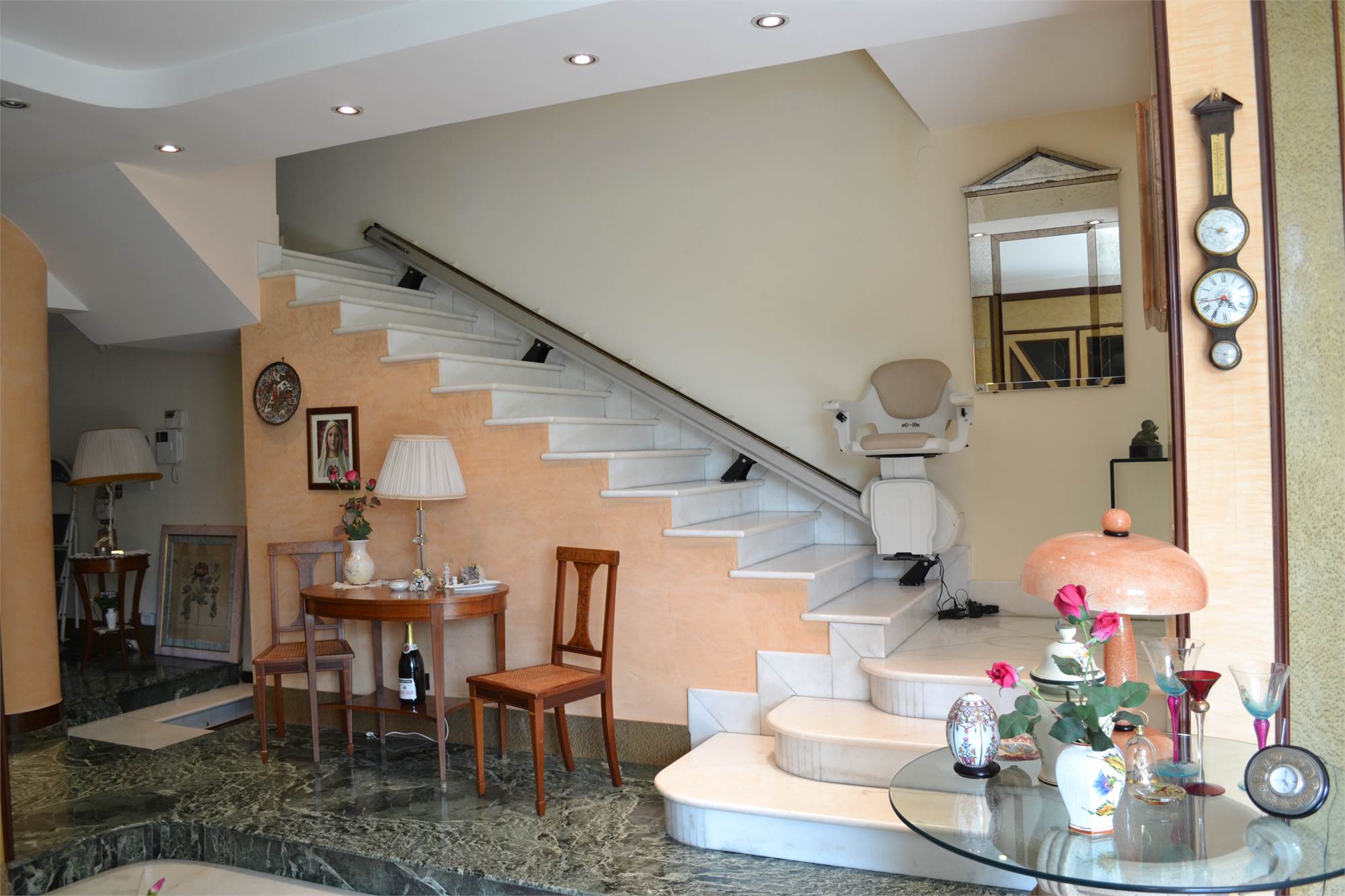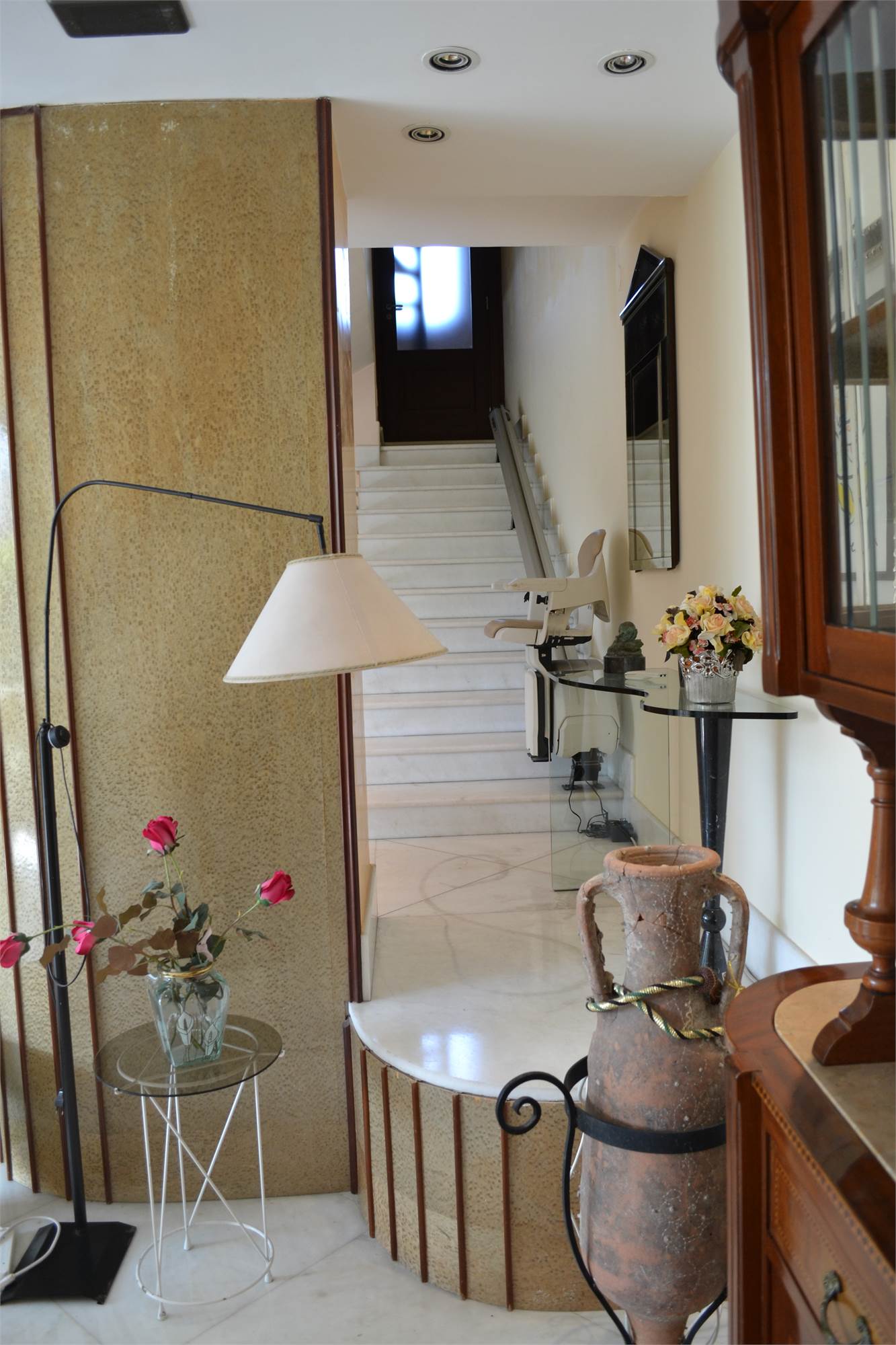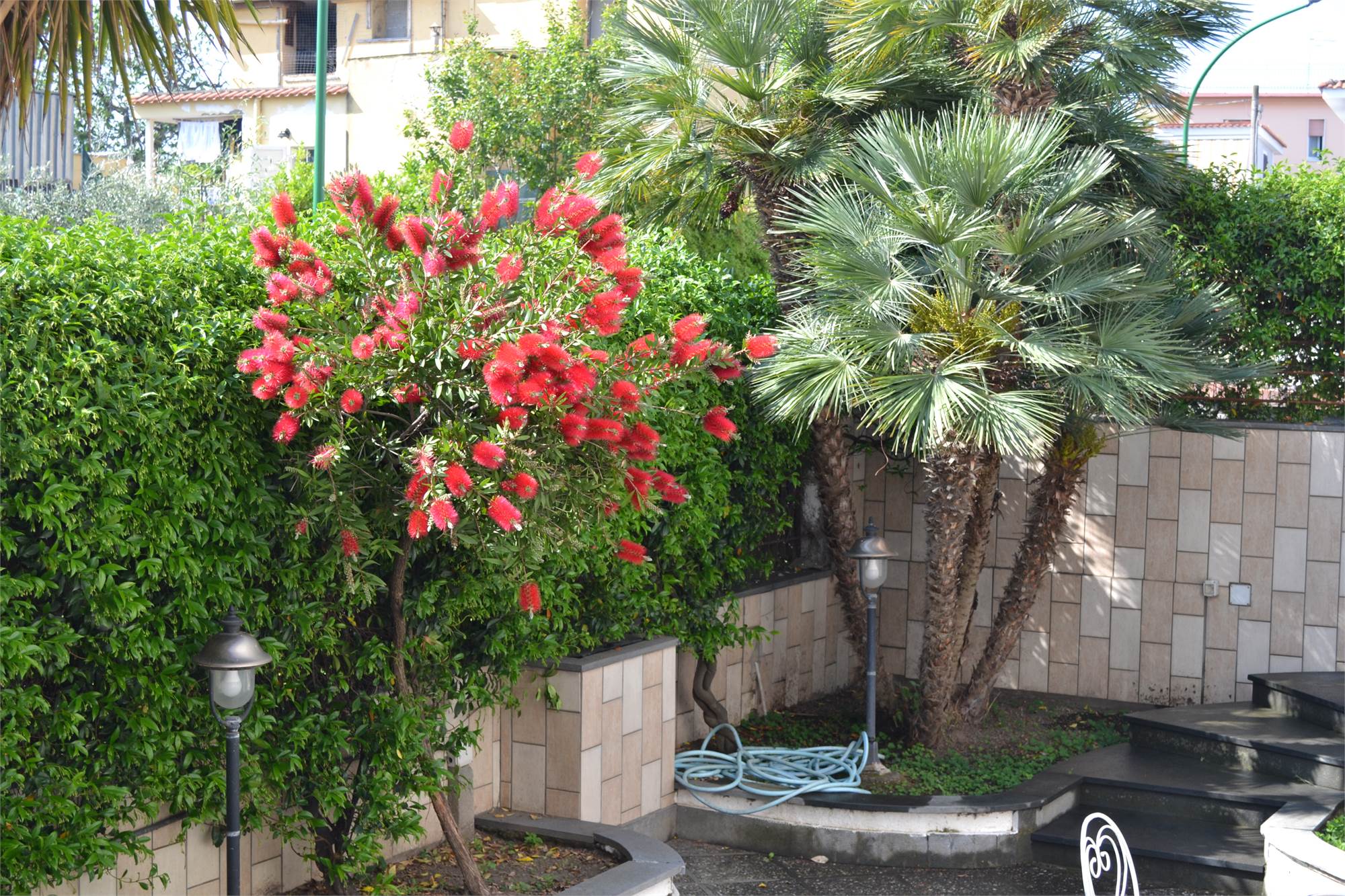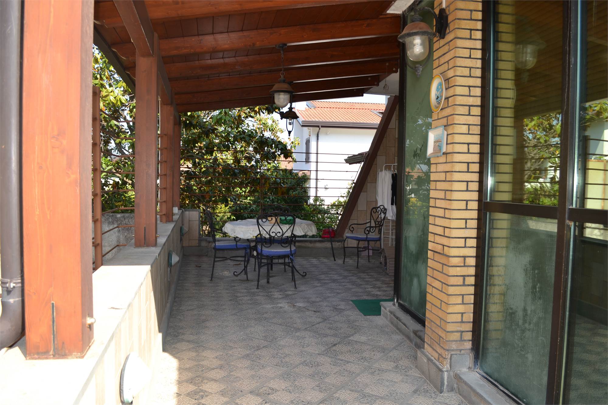 La villa ha un doppio accesso, sia da via Galileo Galilei che da via Leonardo da Vinci, al garage é possibile accedere direttamente dalla villa ed, inoltre, vi sono altri due posti auto coperti più diversi terrazzi a livello suddivisi tra i vari piani.