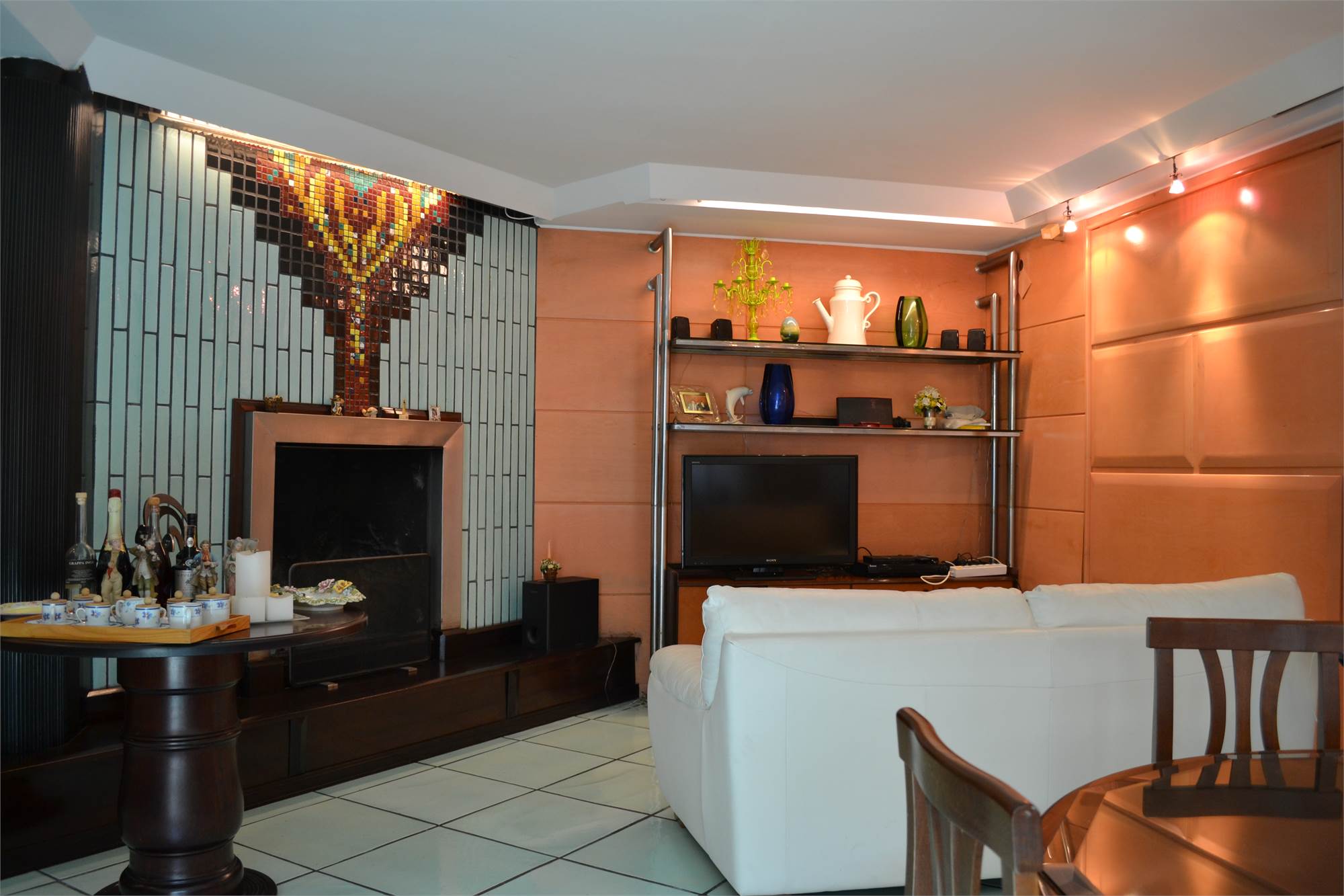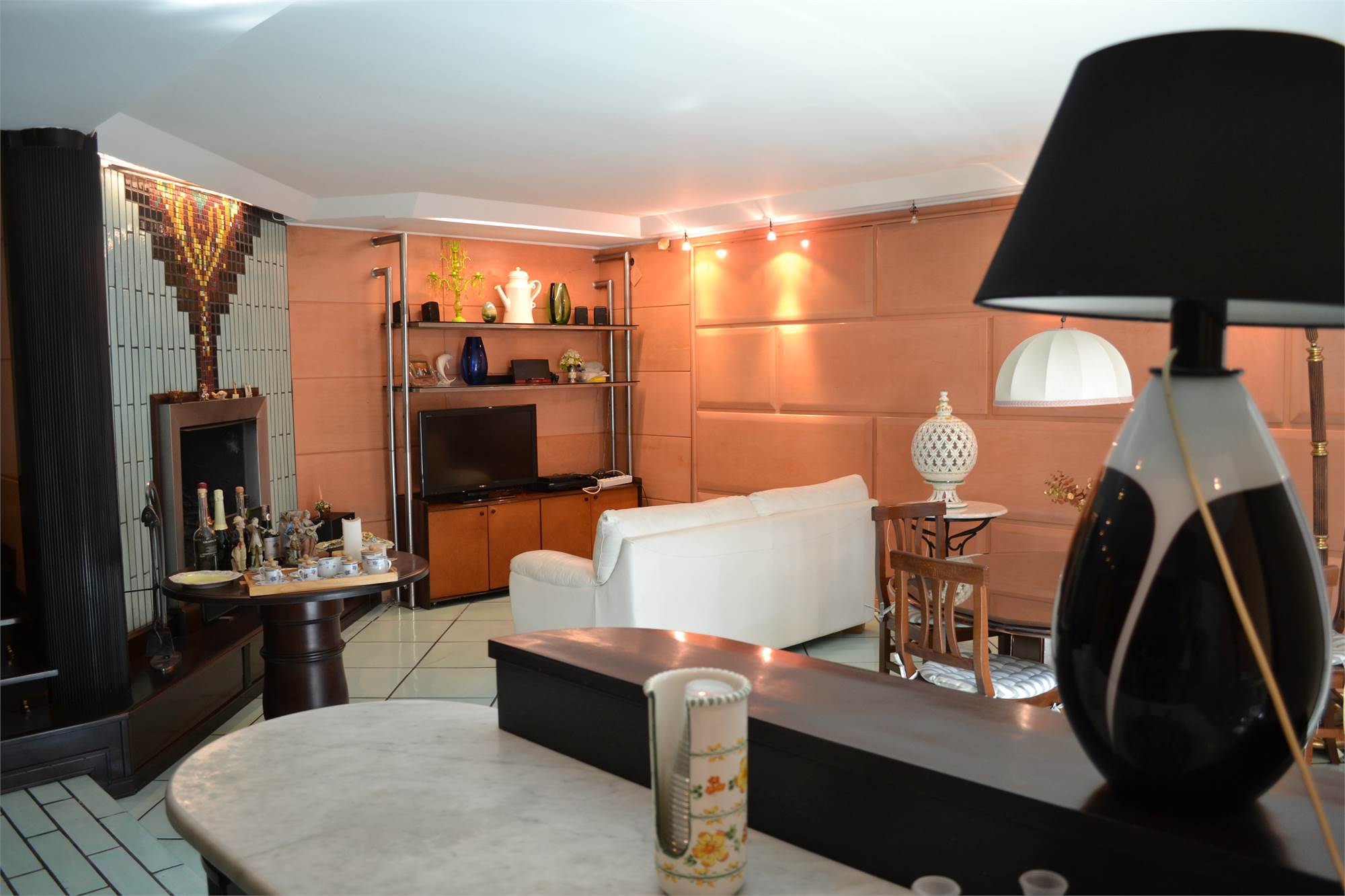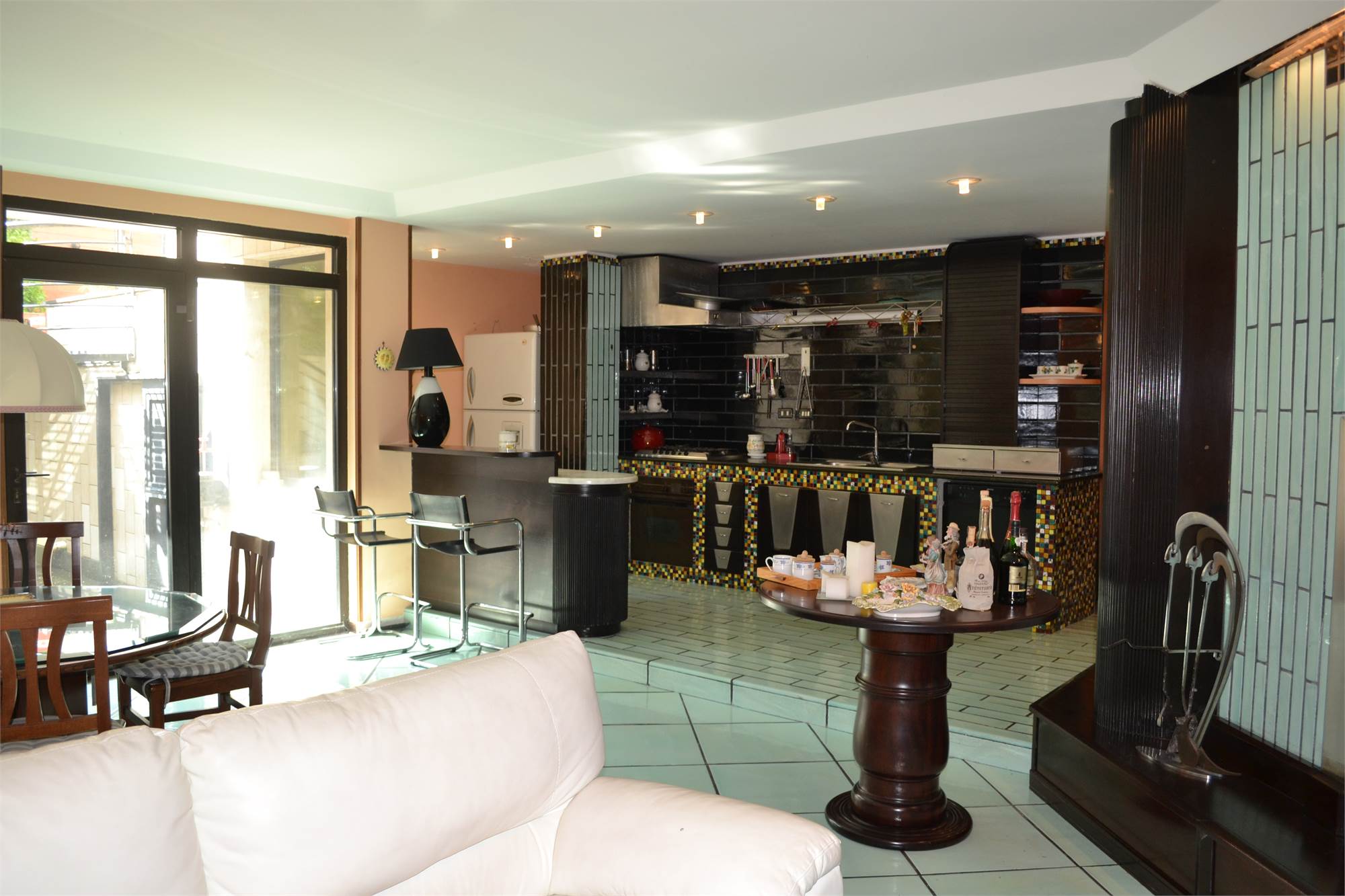 • taverna con angolo cucina e bar, ampio salotto con camino, bagno ed accesso diretto al garage al quale si accede con ingresso indipendente o tramite scala interna direttamente dalla villa;