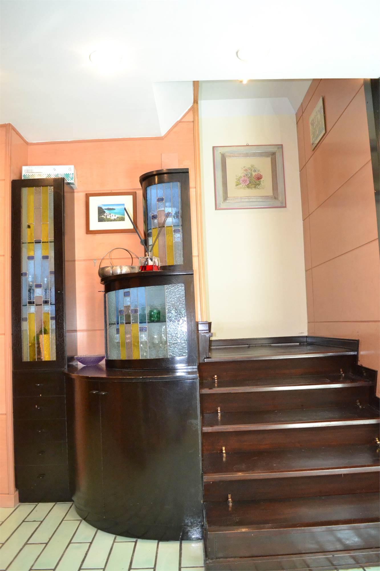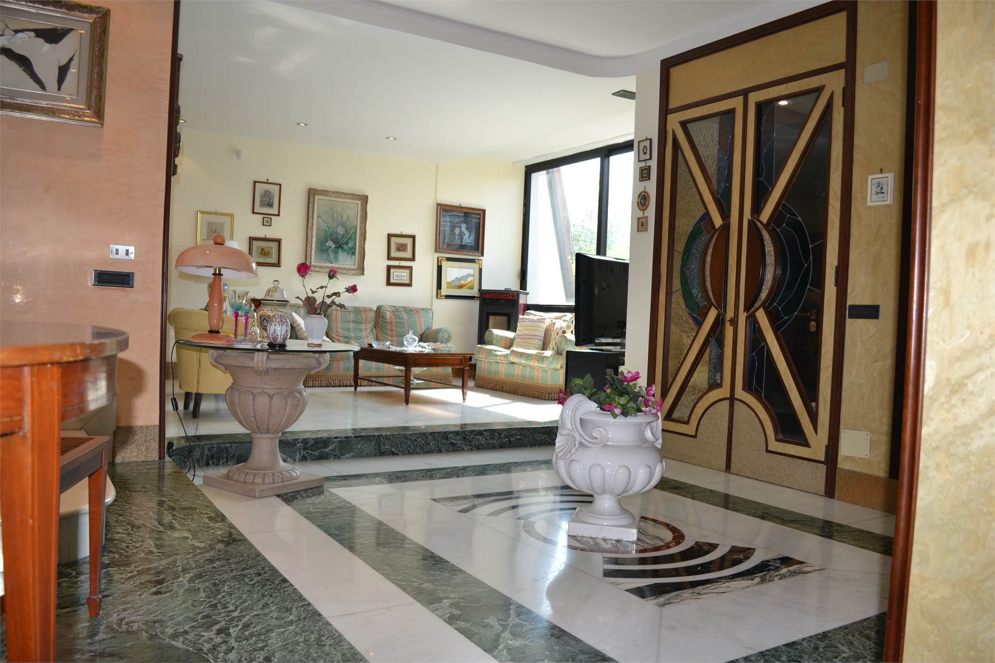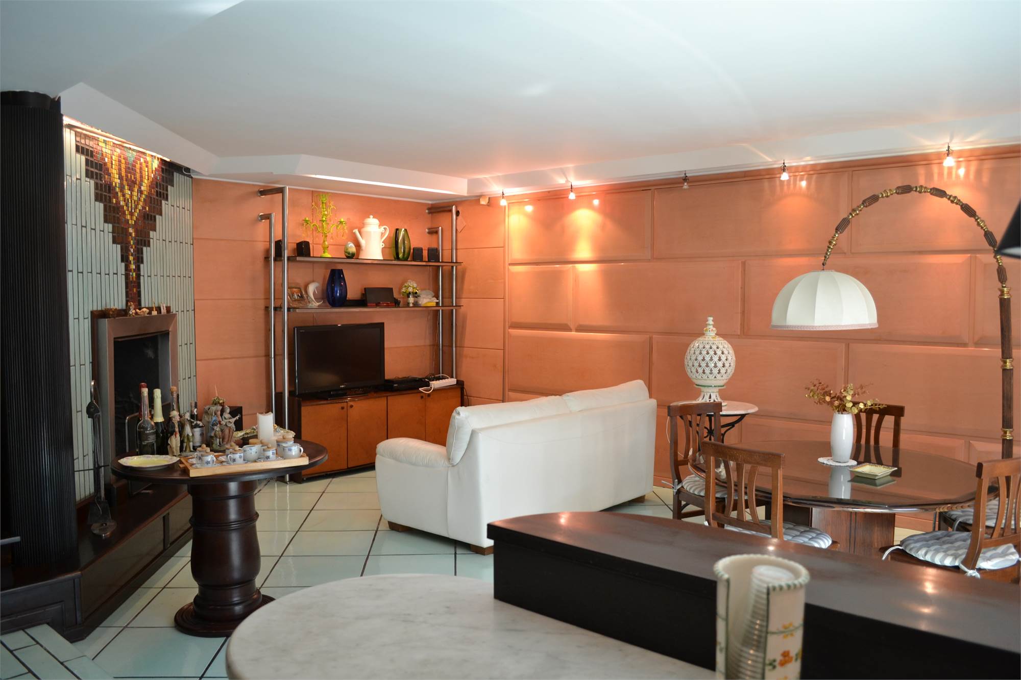 • taverna con angolo cucina e bar, ampio salotto con camino, bagno ed accesso diretto al garage al quale si accede con ingresso indipendente o tramite scala interna direttamente dalla villa;
