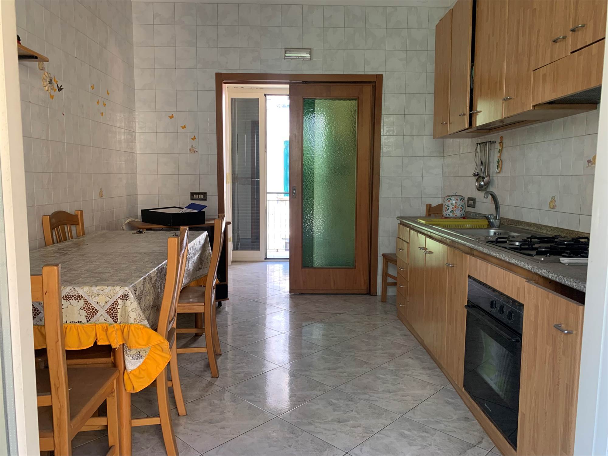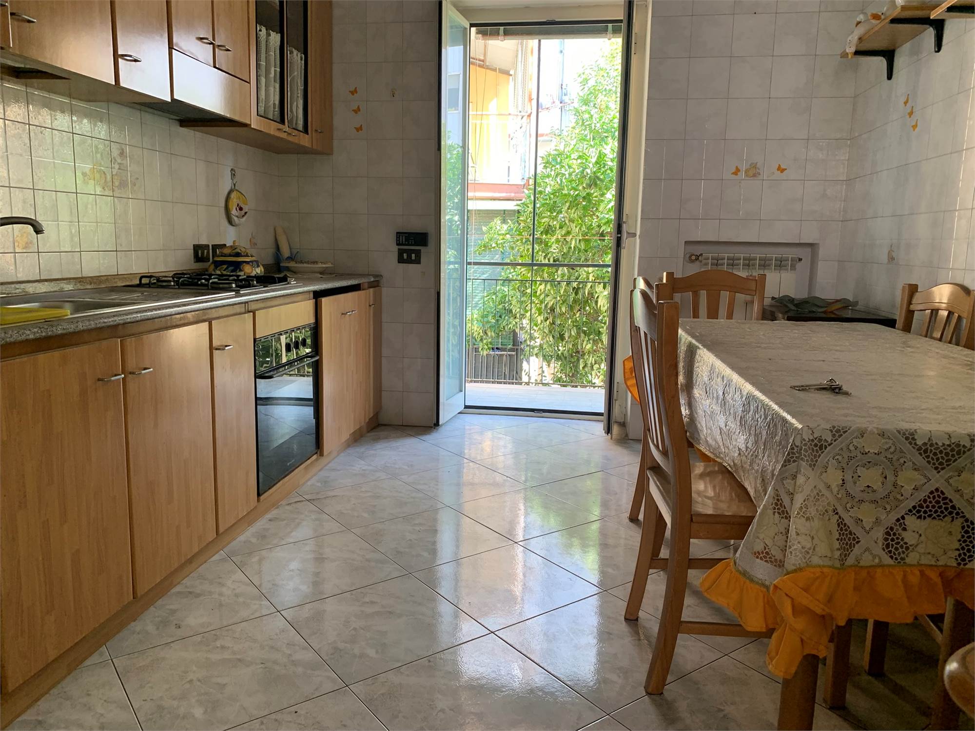 Via Immacolata, tratto alto zona centralissima, proponiamo in vendita, luminoso appartamento in un mini condominio, posto al primo piano, composto di due vani ed accessori e più precisamente ingresso, disimpegno, corridoio, cucina abitabile, soggiorno, e camera da letto, un bagno e tre balconate. La casa gode di una doppia esposizione