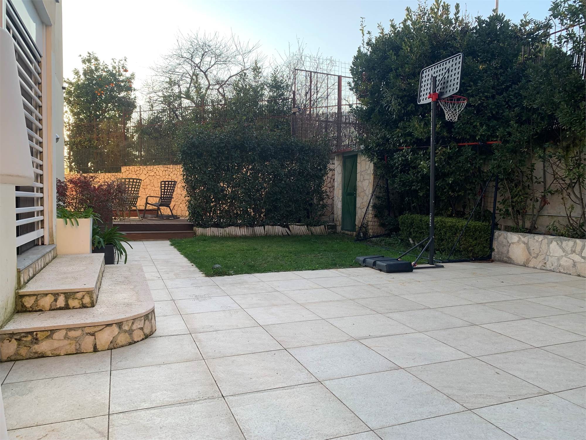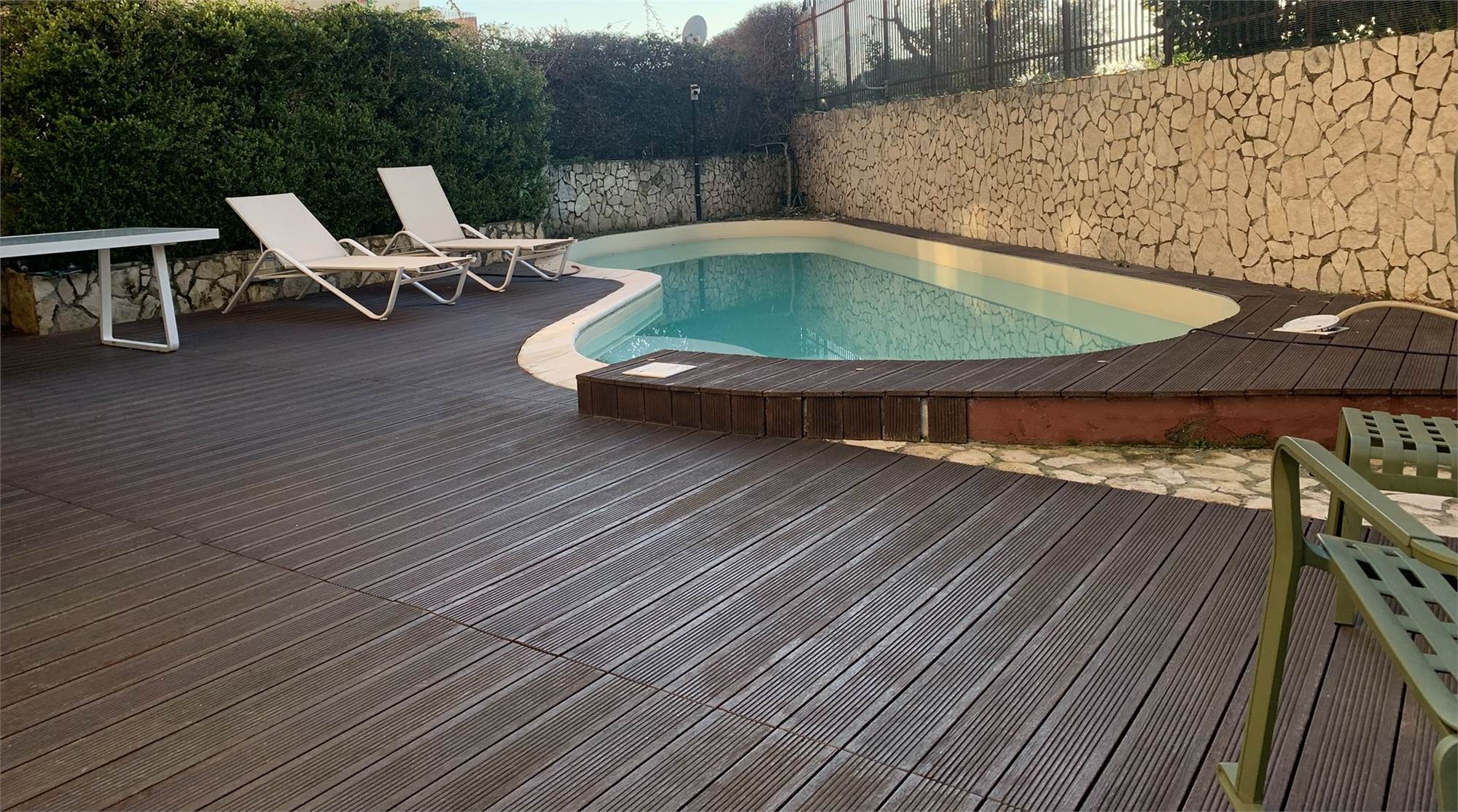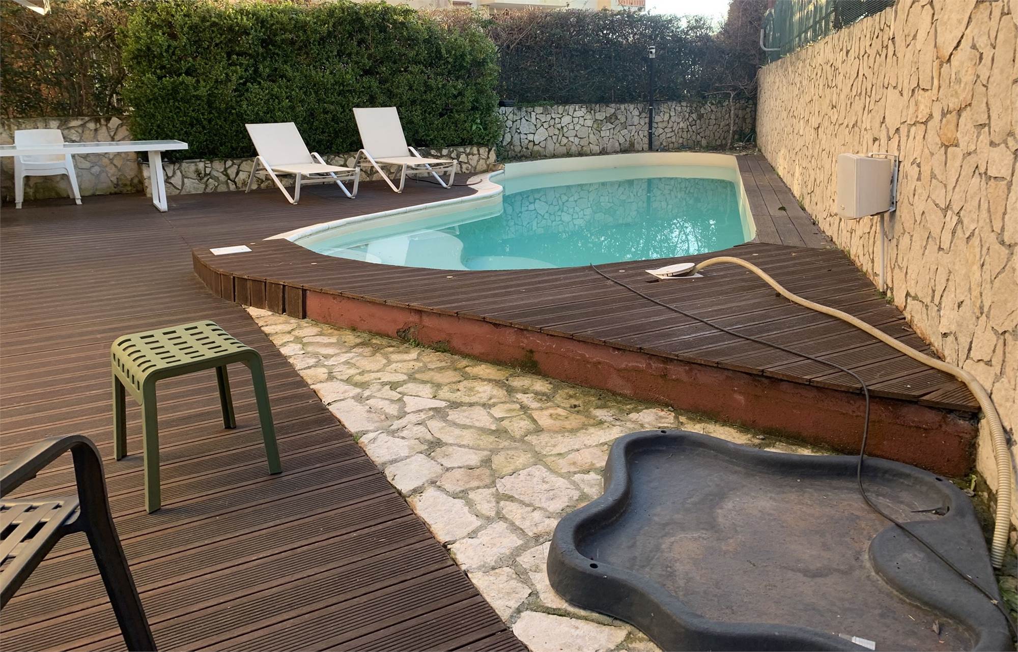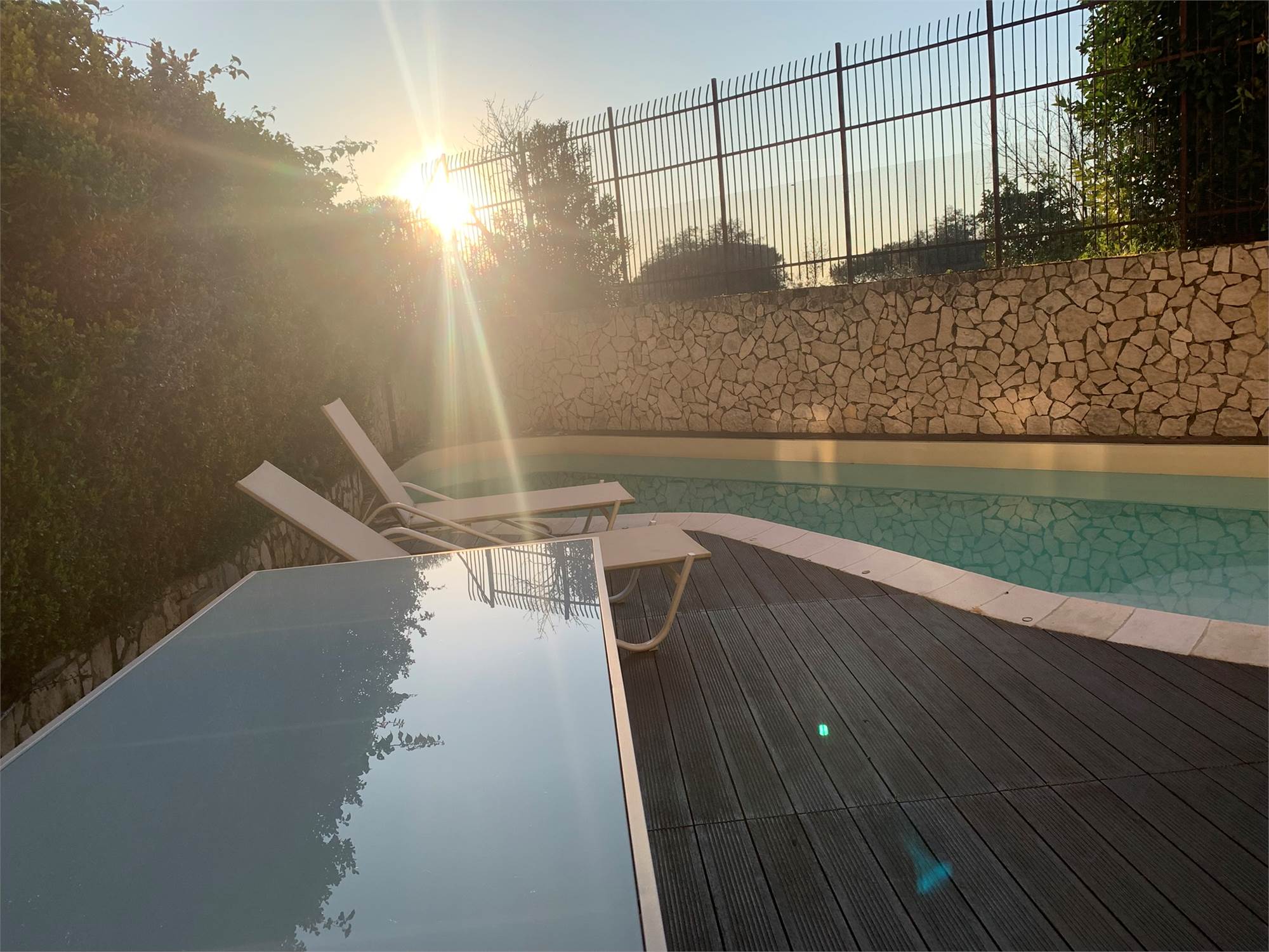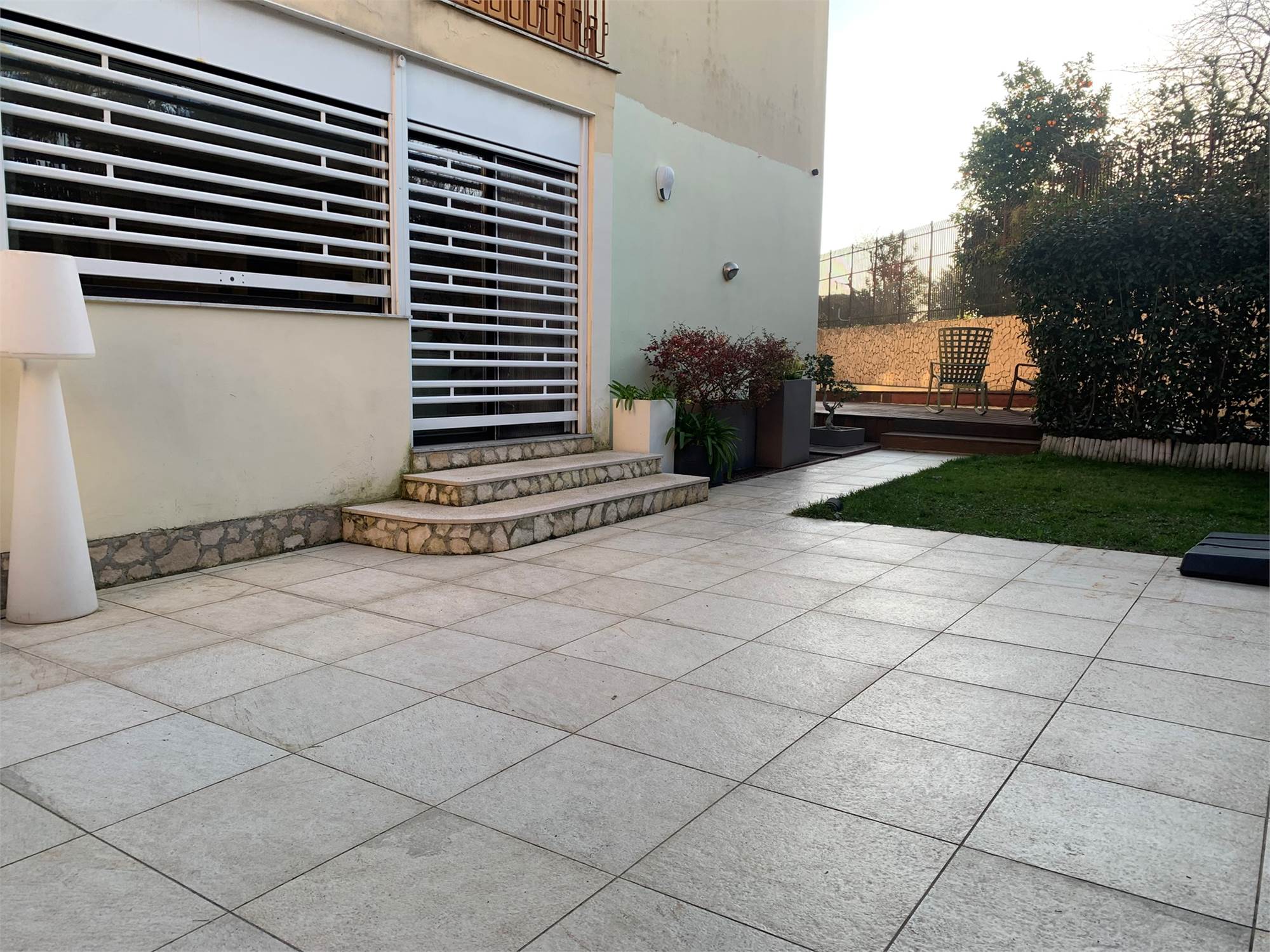 All’esterno troviamo un giardino privato che ospita una splendida piscina, perfetto per godersi momenti di tranquillità in un ambiente riservato. Parte del giardino è pavimentata e dispone di ulteriori posti auto, creando un vero e proprio angolo di relax dove il tempo sembra rallentare.
